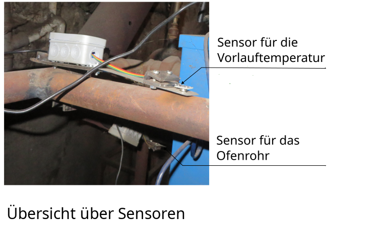 Mit dieser Sensor-Microcontroller-Kombination werden die Werte über Funk an den Router übermittelt und gelangen von da aus an einen Einplatinenrechner (Raspberry Pi). Auf diesem Rechner arbeitet ein Mosquitto-Server oft auch Broker genannt. Um die Daten auf einem Desktop-Rechner zu empfangen muss dort ein Subscriber-Programm eingesetzt werden. Mit der Kenntnis des Topics lassen sich die Daten hier lesen. Der Sensor erfasst die Oberflächen- und Umgebungstemperatur. Die Oberflächentemperatur wird mittels Infrarottechnik gemessen. Die Temperatur des Ofenrohres oben am Rohr, in unmittelbarer Nähe zum Heizkessel, hat sich als problematisch erwiesen. Der Funktionsbereich des MLX90614 endet bei 380°C, und dieser wurde überschritten. Mittels eines mobilen Handgerätes zeigten sich Temperaturunterschiede von ca. 200K, selbst bei der Messung der Vorlauftemperatur zeigten sich erkennbare Unterschiede bei Änderung des Messortes. |